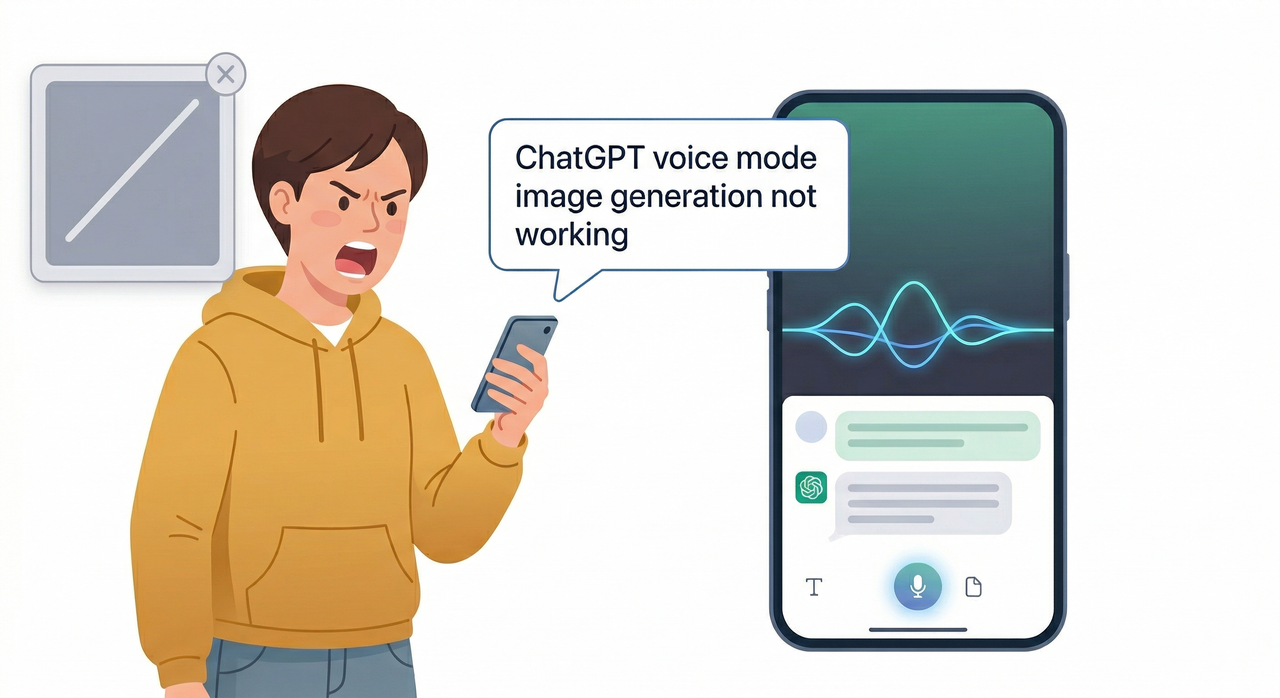 ChatGPT voice mode image generation not working is almost always caused by one of four things: the image generation tool is disabled in settings, the active model doesn’t support DALL·E in ChatGPT, the voice conversation image output pipeline is in a broken state, or a temporary backend glitch is blocking renders. Turn the image‑generation toggle back on, switch to GPT‑4o, start a fresh chat, and clear your app cache — most users are back to generating images in under 5 minutes. OpenAI Help Center – Creating images in ChatGPT
